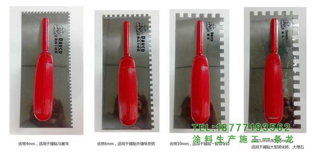 (4)瓷磚膠水不能刮得太厚。粘貼瓷磚應選用合適的齒形刮刀。