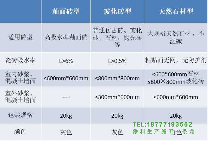 2)超強型特點:適用性更廣,附著力更強(適用于玻化磚、釉面磚,灰水泥色)
