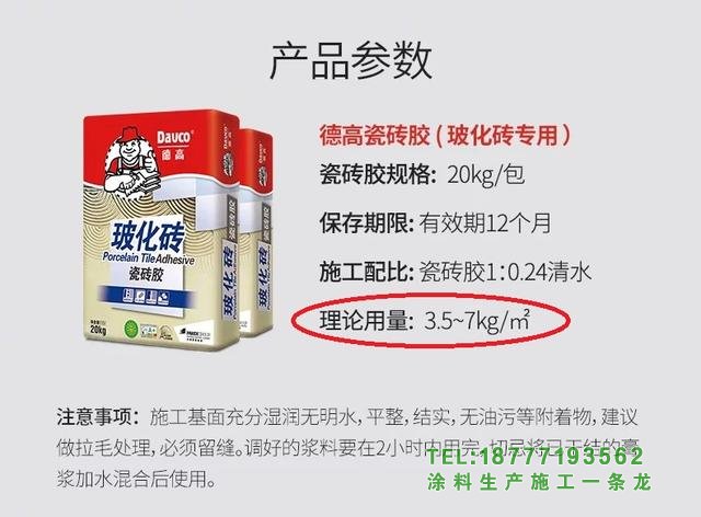 以備受推崇的瓷磚粘合劑為例,您可以看到圖中的理論消耗量為3.5~7kg/㎡,實際上是根據施工現場的情況確定的。如果安裝20公斤,墻面平整度較好,在±5毫米條件下誤差約為4平方,平整度不好誤差約為2平方。對于25公斤的包裝,平整度約為5平方米,而平整度約為3平方米。為了準確估計消耗量,有必要知道基面的平整度。購買前詢問制磚機。