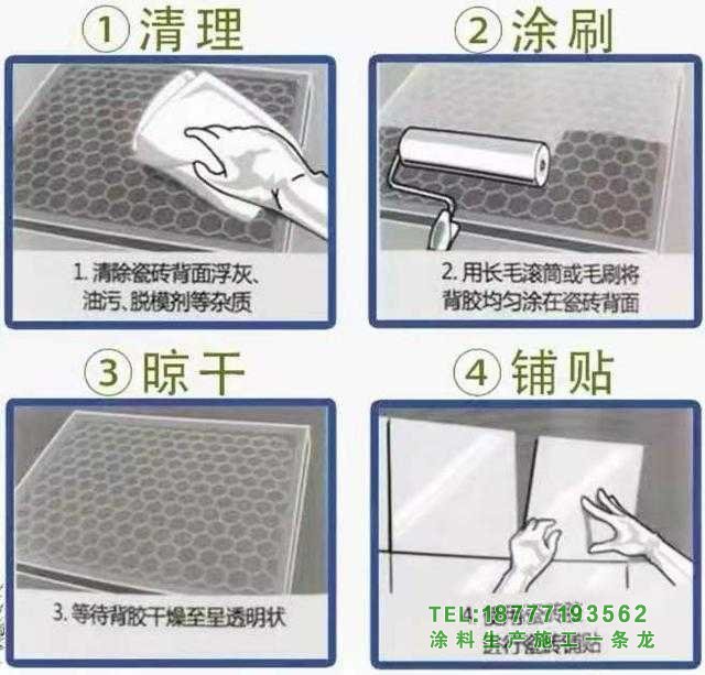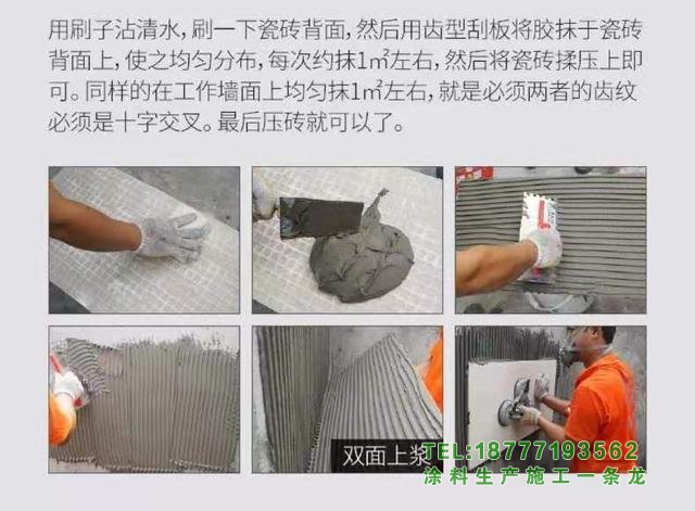 (5)在瓷磚背面涂刷后,待涂層變透明后方可涂抹水泥砂漿或其他粘結材料進行鋪貼。
