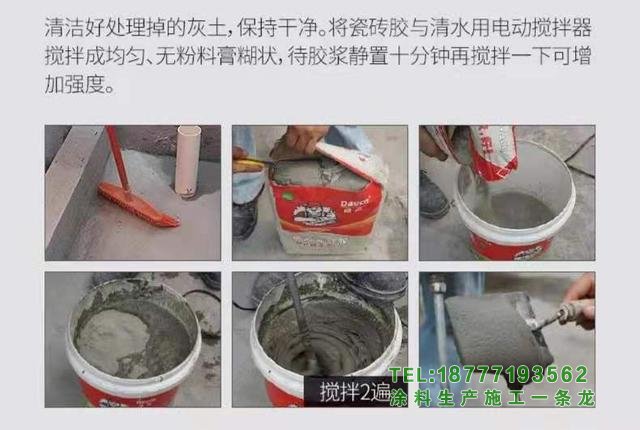 2(3)瓷磚膠水不能放置太久,也不能在干燥的瓷磚膠水中加入瓷磚膠粉和清水繼續混合。