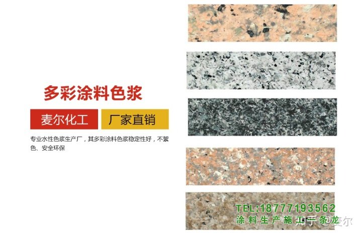 接下來,邊肖將向您展示水性多彩涂料的色漿和參數: