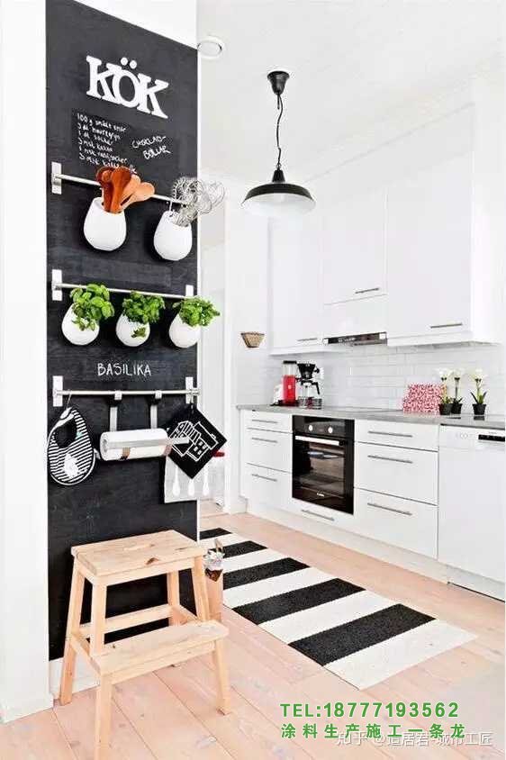 3▲廚房是家里雞犬最多的地方。更不用說各種各樣的小家電,廚房用具和調味品就足以引起頭痛。黑板墻可以很容易地用來總結、評論和標記,使它看起來更清晰。家庭主婦把購物清單列在廚房的墻上是很合適的。畢竟,我們負責廚房,說大道理!