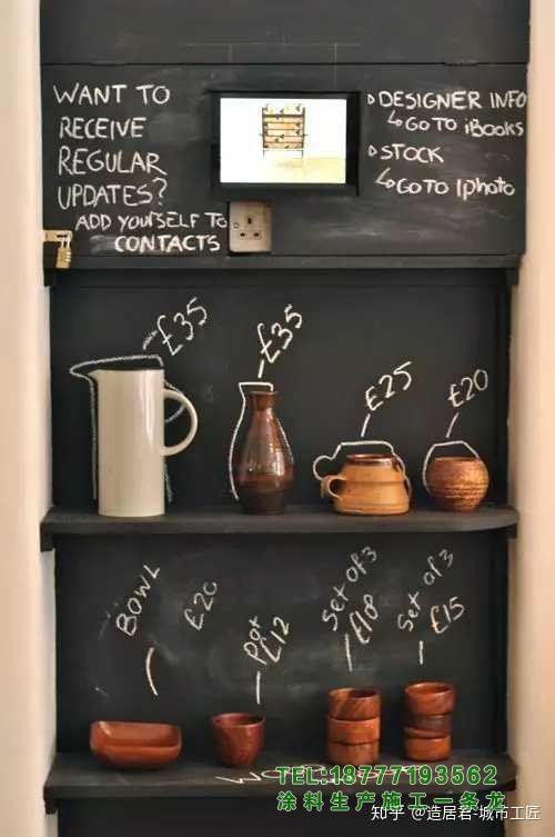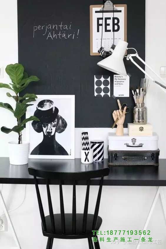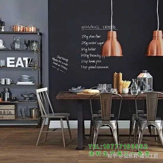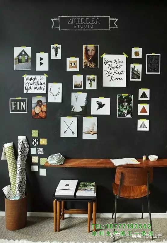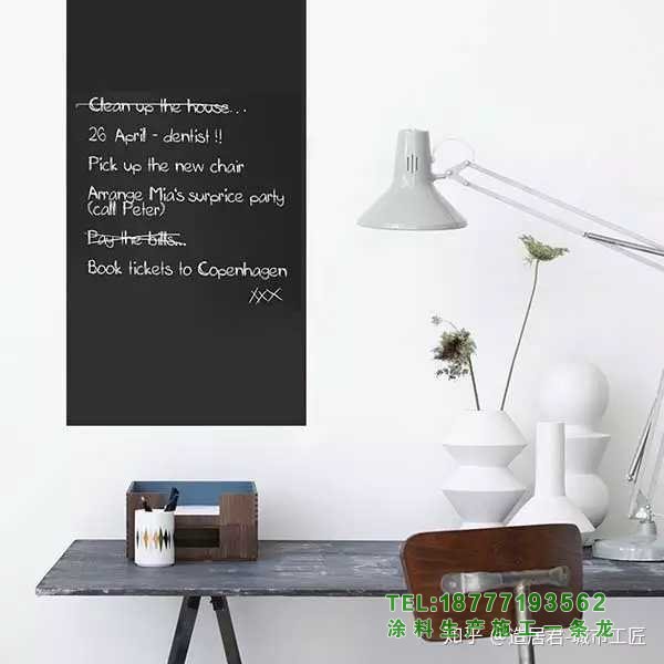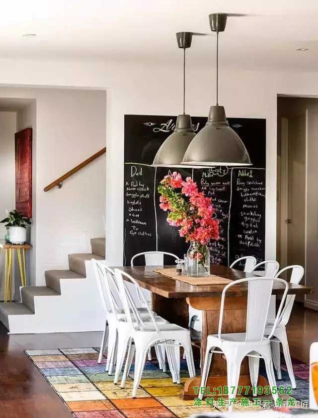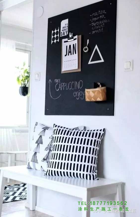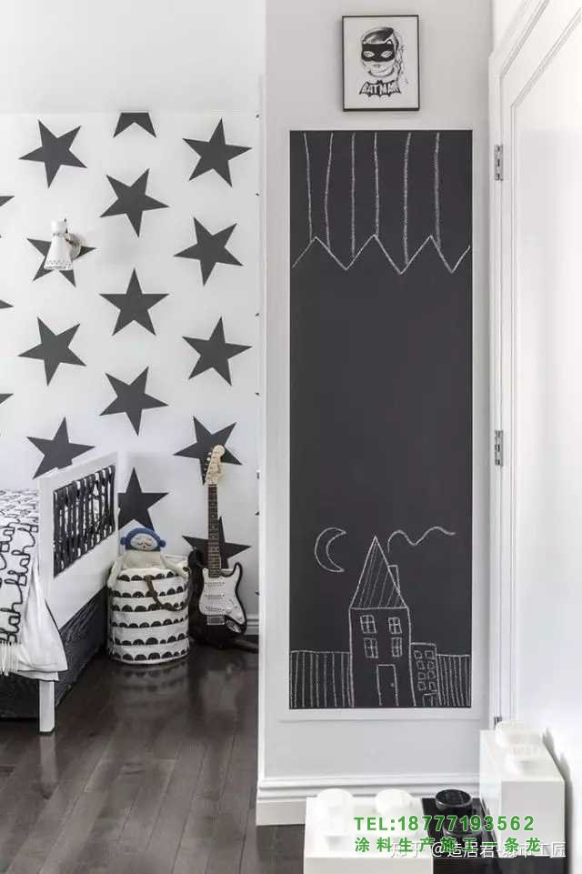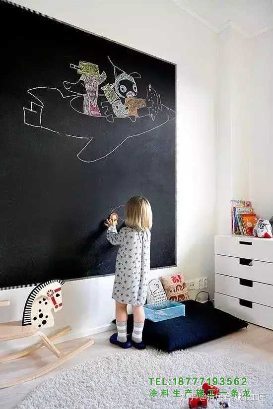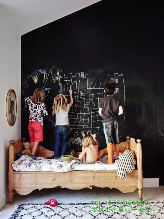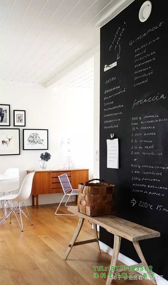 [3]如果裝修范圍比較大,最好粉刷一下。黑板漆推薦福樂閣,北歐品牌,3萬種顏色,耐擦洗2萬次,基本能滿足日常使用需求。