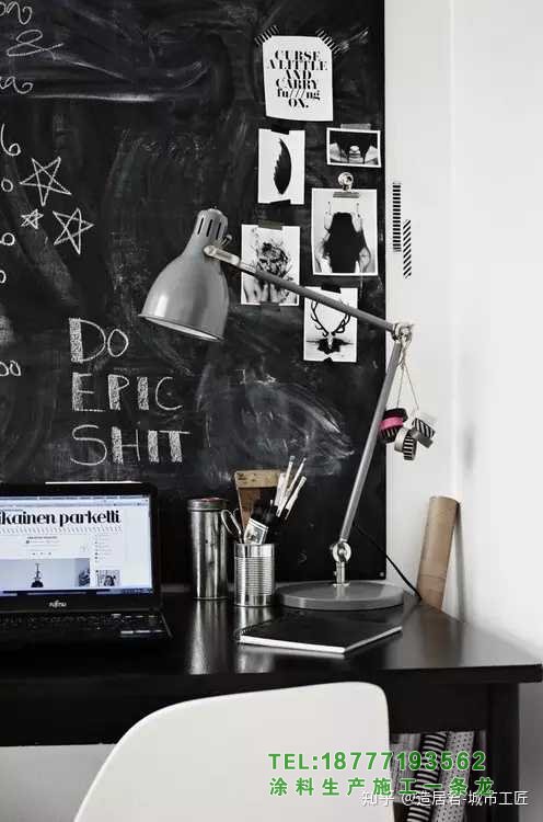 3▲在課桌前放一面黑板墻,馬上就會有一種“我在努力學習”的氣氛,讓人想起學生時代認真聽講的感覺。現在你仍然可以有這樣一個靈感板,并隨時寫下你的新計劃。